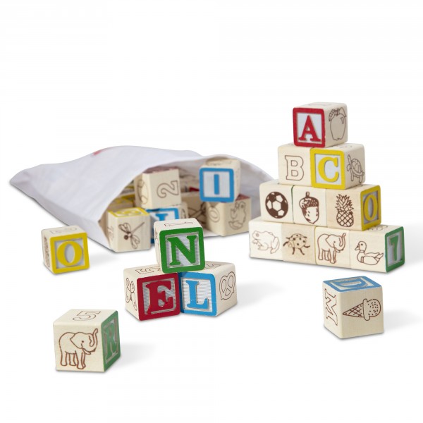 Lot de 50 cubes en bois représentant l'alphabet et les chiffres.