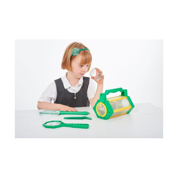 Observez des créatures vivantes ou des plantes dans la grange à insectes. Pot de visualisation ventilé supplémentaire avec micro règle, filet, loupe, pince à épiler et manuel d'instructions inclus.