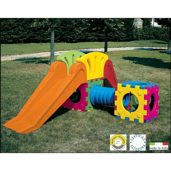 Matière plastique robuste et non toxique, à la fois résistante aux rayons UV et aux intempéries, ce qui permet d'installer Cubic Toy aussi bien à l'intérieur qu'à l'extérieur, dans les aires de jeux, les écoles, les gymnases et les piscines, par exemple.