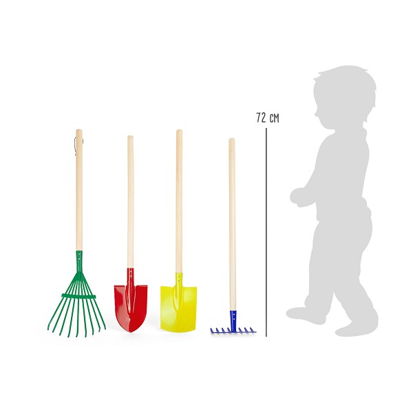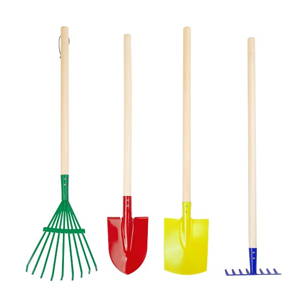 Ensemble de 4 outils de jardinage en métal et avec une poignée en bois.