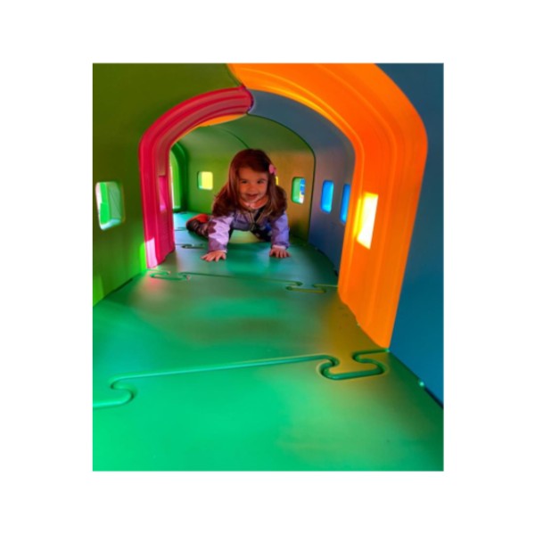 Le système de couplage l’empêche de s'ouvrir et la base de support à emboîtement sûr permet de le placer sur n'importe quelle surface pour assurer la sécurité des enfants qui jouent. De plus, les vitres latérales laissent abondamment entrer la lumière dans le long tunnel.