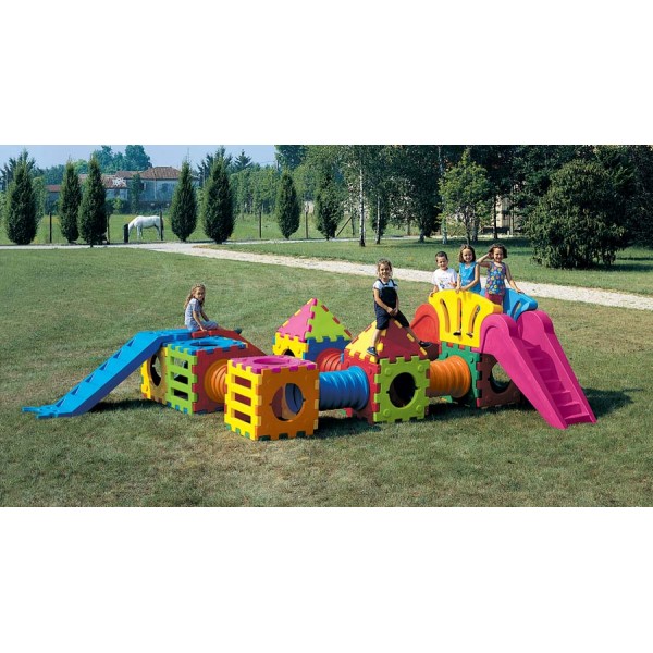 Matière plastique robuste et non toxique, à la fois résistante aux rayons UV et aux intempéries, ce qui permet d'installer Cubic Toy aussi bien à l'intérieur qu'à l'extérieur, dans les aires de jeux, les écoles, les gymnases et les piscines, par exemple.