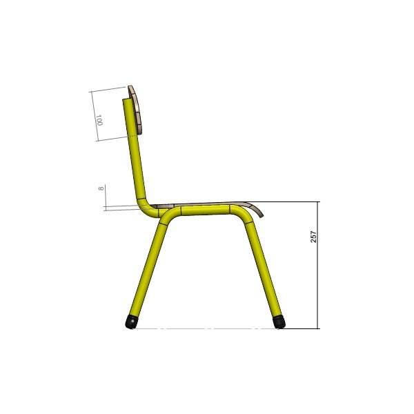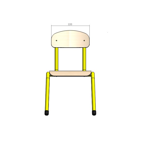 Chaise avec structure métallique (tube épais de diamètre 19 mm), assise et dossier en bois multiplis, forme ergonomique pour une bonne posture de l'enfant.