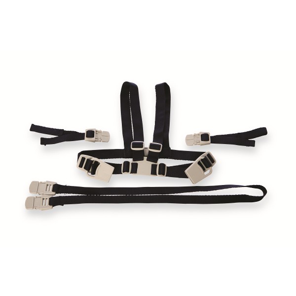 Harnais de maintien multi-usages, s'adapte sur poussette , chaise haute ou peut être utilisé en promenade grâce à la laisse d'apprentissage fournie.